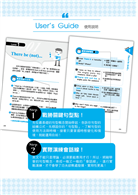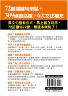 所以,我將平時生活中最常出現、使用頻率最高的72種句型彙集整理成這一本書,再將這72種句型分為6大類,每篇皆以【戰勝關鍵句型點】→【實際演練會話線】→【例句連發超有感】→【快速挑戰過難關】→【補充加強文法面】的五步驟方式,從點到線、從線到面地融會貫通英文概念,為的就是讓你能夠一本戰勝句型,克服「英文句子恐懼症」,往後看到再長的句子都可以直覺反應一秒看懂,無論聽說讀寫都能運用自如,這才是真正攻頂、 征服英文的不二法門!