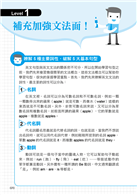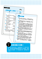 全書共6 個LEVEL,每當要進入下一個LEVEL前,最好都來個過關測驗看看自己的能耐,徹底檢視自己的程度是否已經達標,才能按部就班向上挑戰,不會因為越級打怪,結果越學越沒有自信而放棄!