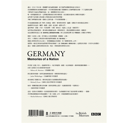 這是一部書市引頸期待…具高度原創性的著作,為英國讀者介紹了最具影響力的鄰居――德國。非常樂意推薦給任何想認識除了「第三帝國」之外,其他德國歷史面向的讀者。――Ritchie Robertson,《泰晤士報文學副刊》