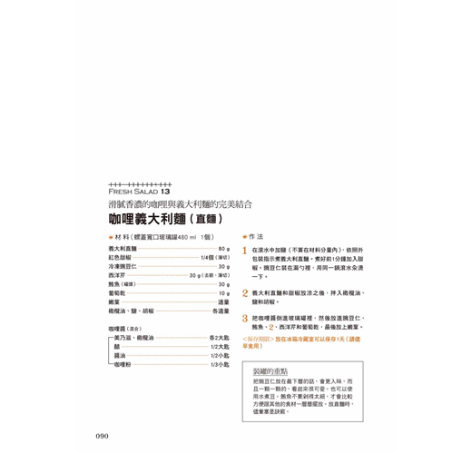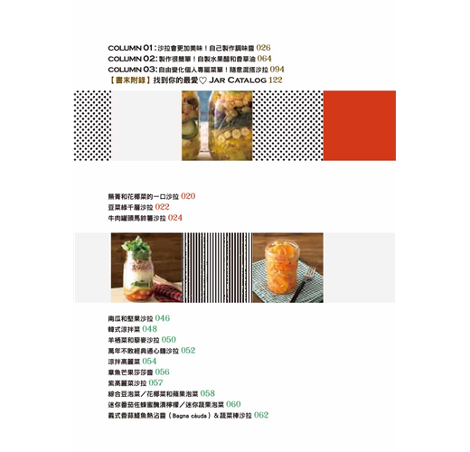 視食材不同,有的沙拉只要瓶罐密閉,就可以放在冰箱冷藏室保存好幾天。如果利用週末空閒時間事先做好的話,平日就輕鬆了。此外,醬菜類比較能夠久放,所以事先做好的話,也可以當作罐裝沙拉的常備菜。