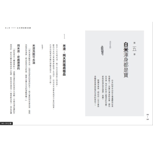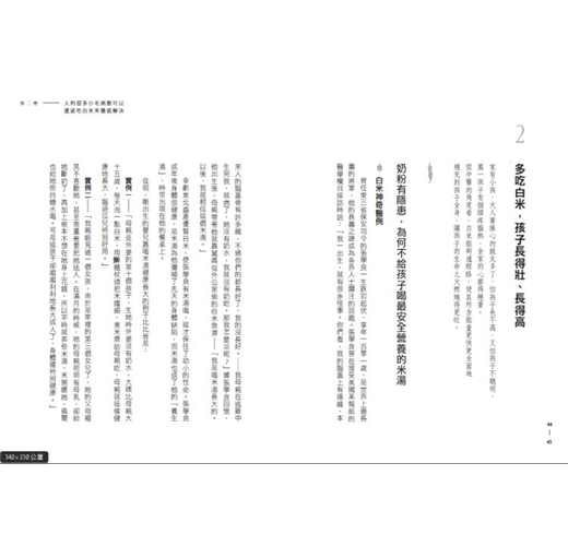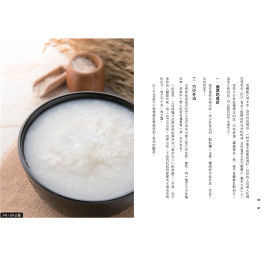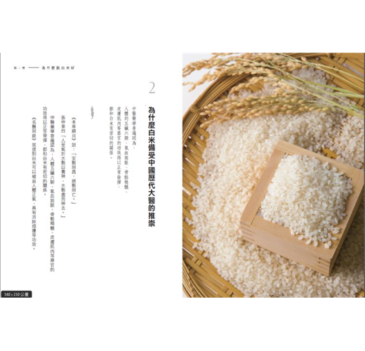 著名中醫博士欒加芹、宮錦汝於書中分享多年臨床研究成果,不但有大量真實可信的白米治病醫例和詳細醫理,也將米飯怎麼吃才有效、喝米湯的最佳時間、怎麼挑選優質白米、熬粥的最佳器具、米渣和掏米水和米糠的好處等都收錄其中,帶你走出多年來不正確吃飯的誤區。