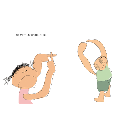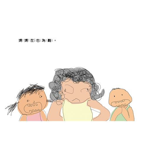身為三個小孩的媽,作者畫出家中姊姊和弟弟吵鬧的模樣,