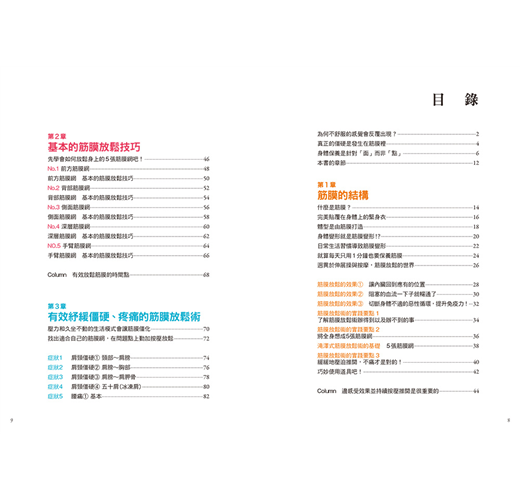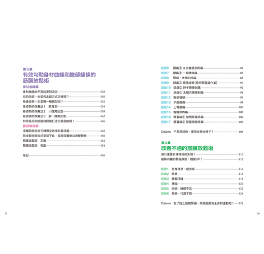 本書收錄各種筋膜放鬆技巧,針對各種症狀解說按壓方式與部位,讓你每天只花1分鐘,在家就能自行紓緩疼痛、改善大大小小的身體毛病!