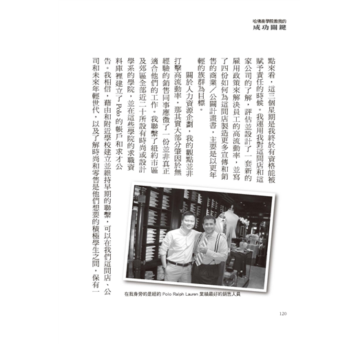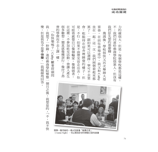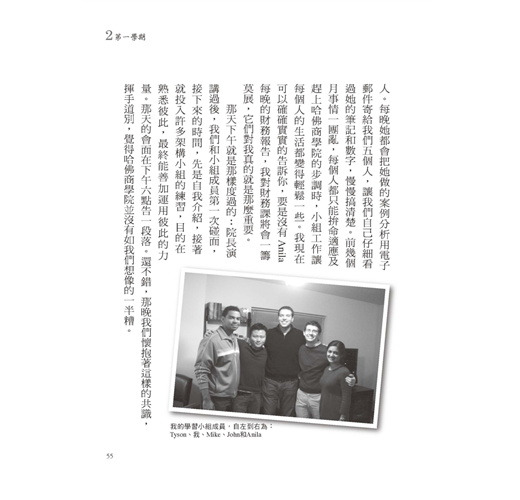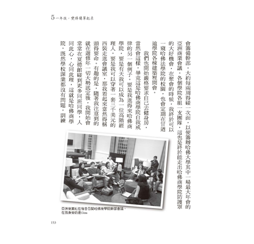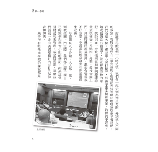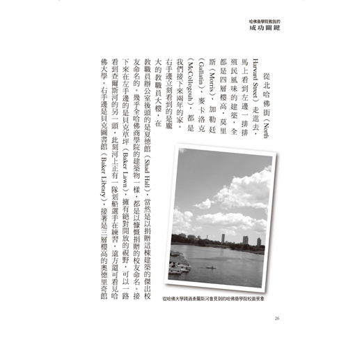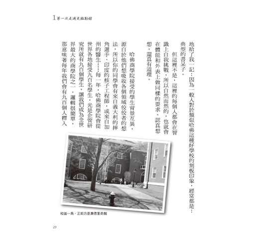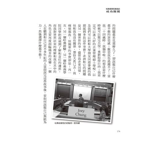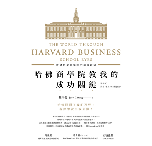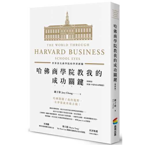 Joey在書中除了分享他在哈佛商學院兩年的學習經驗,詳述教授上課的精彩情況(甚至有國外經營者的線上會議),哈佛商學院學生的日常生活點滴,也分享他對東西方教育心態的看法:西方教育鼓勵學生勇於嘗試,而東方教育制度則不斷提醒學生知道自己的能力和限制所在,以致不敢踏出嘗試的第一步。
