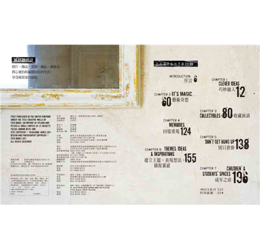 收錄超過300個展現自我不設現的風格牆面設計,激發你的想像力,搭配作者從事居家美學產業多年的觀察與心得分享,提供回歸個人收藏與喜好來,解析居家佈置陳設的嶄新觀點。