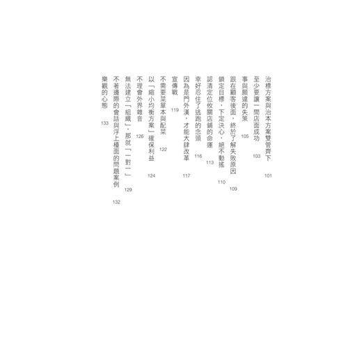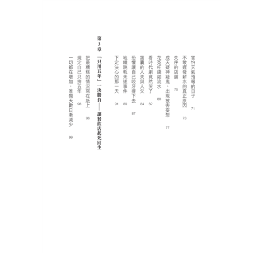 社會是現實的,數字也是現實的。我創立的餐飲公司在經營上也遇過不少問題。第一次經營壽司店就獲利回本,讓我低估了制度建立與組織設定的重要性。因此在經營轉型後的米販食堂,重重的跌了一跤。當時餐廳業績與知名度雖然蒸蒸日上,但組織內部問題卻日益嚴重,擴大到後來影響整體收益。當營運發生問題的時候,才能清楚看見自己在經營上的缺失,並進一步去檢討改進。原來,公司正是經營者的一面鏡子。