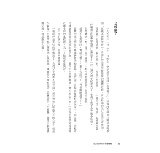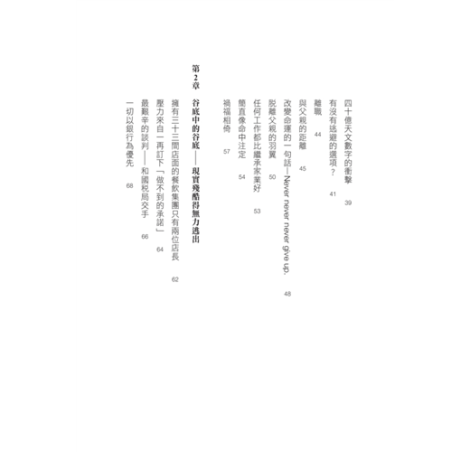 是一本完整的企業起死回生紀錄,所有經營事業該遇到的問題,湯澤先生都以倍數擴大的方式遭遇了,然後不可思議地跟四十億負債對抗並逆轉勝,令同樣有創業經驗的我感到無比的敬佩。讀完本書的最後一頁,我立刻上網查詢了湯澤先生的照片,果然是一位滿臉故事的企業家。
