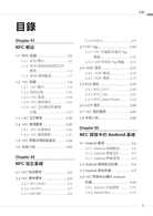 涵蓋核心的技術應用,如Android平臺下NFC的API、NFC標籤映射、NFC卡讀寫模式開發、TAG讀操作實例、TAG寫操作實例、NFC P2P模式開發、NFC卡類比模式開發、基於硬體的卡類比方式—虛擬卡模式、虛擬卡模式的開發、基於軟體的卡類比方式—主機卡模式等
