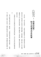 因此,我們做母親的是不是要轉變「養不教,父之過」的觀念,再也不能放手不顧,將養育孩子的責任推給丈夫或者是自己的家人?