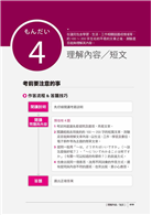 專業有效的學習內容是成為一本好教材的首要條件,但如何讓這麼好的教材可以被充分吸收,就要靠有系統的編排方式,讓讀者可以縮短查詢、翻找等「學習」本身以外的時間!本書突破以往編排方式,重新設計,以「題型」分類,將日檢閱讀題型分為「問題四」、「問題五」和「問題六」三大單元。