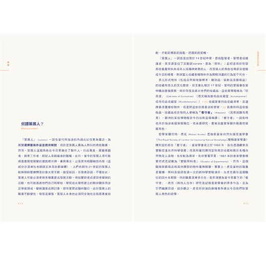 媒體推薦:本書資訊豐富……作者在每個探問與指導背後,均以精確的文字和令人敬畏的豐富經驗帶領讀者體驗策展過程。書中頻繁提及的各博物館館長工作心得,不僅為本書增添個人專業色彩,也提供許多思考策展問題的實用觀點。每位學習策展的學生或新手策展人都會認為這本書應該是課程的一部分。時至二十一世紀,這本聚焦於策展工作細節的著作,不僅對每位在博物館工作的策展人而言是相當有用的資源,也是當代美術策展實踐者亟需的實用指南。