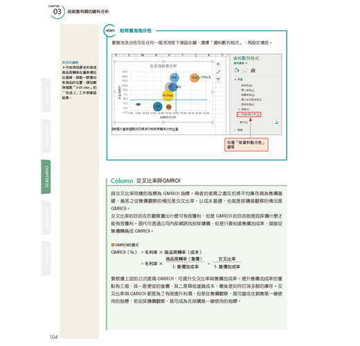 透過實例介紹能短時間建立各種數字的Know-How!「商品的生命週期該怎麼判斷?」、「該如何有效的管理庫存?」、「哪些是賣得好又有利潤的商品?」、「什麼樣的產品打折促銷才會有效果?」、「該怎麼定價才能賣得好?」、「要怎麼預測下一季的銷售業績?」、「要怎麼找出天氣跟產品銷售的關係?」、「哪些是貢獻度高的好顧客?」、「當顧客回答你『不知道』的時候,有什麼方法可以猜到他們心中的答案?」本書可以幫助您學習資料分析的能力,從數字中找出上述問題的答案,精準完成業績目標。