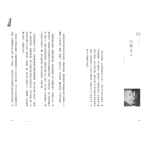 回想那個最初的自己,踏在巴黎的街上心撲通的跳,揣著未知,期待各種相遇,為了開創自己的故事,總是精神滿滿的生活著,每個夜晚都像戰士一般的全副武裝,抹上紅唇並勾出一道凌厲的眼線,踩著高跟鞋漫遊在午夜巴黎;利用最後一班地鐵出征,坐上最早的一班地鐵凱旋。