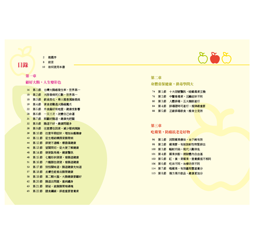 本書縱談「第二顆大腦」腸道健康對身體的益處,介紹定期排毒的方式和功效,討論蘋果在東西方生活中的廣泛應用,也談市面上的營養補充品對健康維護所扮演的功能,值得對健康養生及蘋果功效有興趣的讀者深入閱讀。
