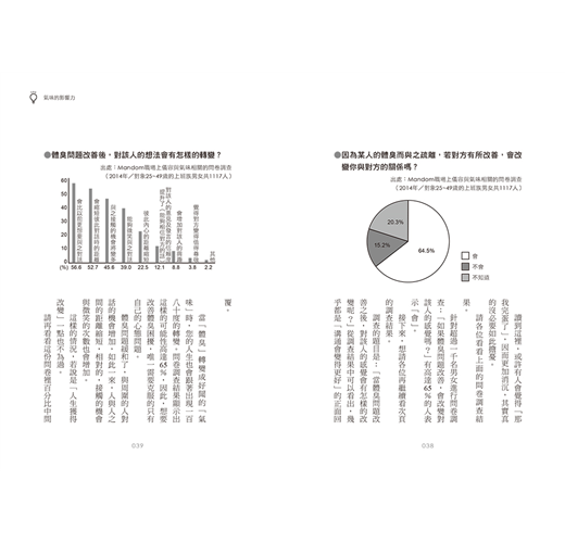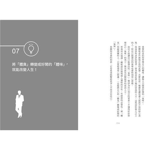 1.不只改善生理的體臭問題,也調整面對體味的健康心態,讓人從自卑變自信!