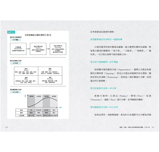 第3章會說明「分解」的技術。乍看之下棘手的問題,只要經過「分解」,劃分成容易處理的大小,就能理出頭緒。我會根據科特勒(Philip Kotler)的行銷理論,介紹實用的市場區隔方法。
