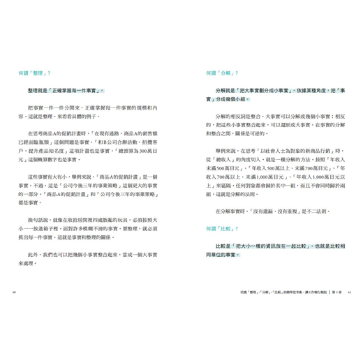 反過來說,只要培養「整理」、「分解」、「比較」的能力,就能自信的面對任何工作上的難題。