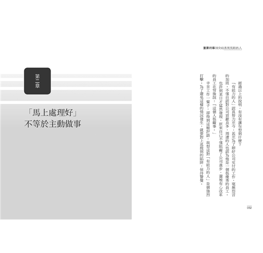 即使可以很快展現成果,讓人覺得他很優秀,但這種工作方式卻潛藏了一個非常基本且嚴重的問題,就是很多有能力的人,只是善於處理眼前的工作而已。