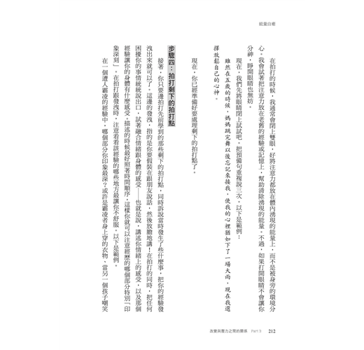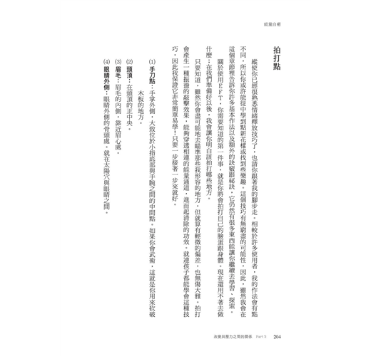 藉由肌肉測試及學習身體語言,來明確找出能量堵塞處。書裡的文字將會明確指引你如何清除能量堵塞,以獲得完整的自癒能力。