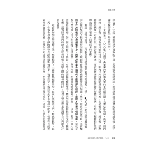 〈生命是一段美好的旅程,奇蹟從你相信它開始發生!〉 ──EFT情緒釋放專家、生命火花講堂、《EFT情傷療癒,找到全新的自己》、《EFT情緒療癒─10分鐘情緒排毒敲打操》作者/林嘉瑗(Carol Lin) 《能量自癒》對於真正想自我療癒的人來說,這是一本精彩的書。它從深層次的自我檢測開始到自我修復。 在治療很多個案之後,我出版了兩本 EFT自我療癒的書,但我發現,大多數人不能即早意識到自己的身體和心靈如何被情緒消耗,看不到他們真正的問題,所以無法進入第二步――自我療癒。 人們通常要等到身體發出非常強烈的信號,如...