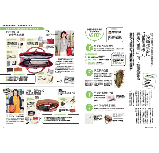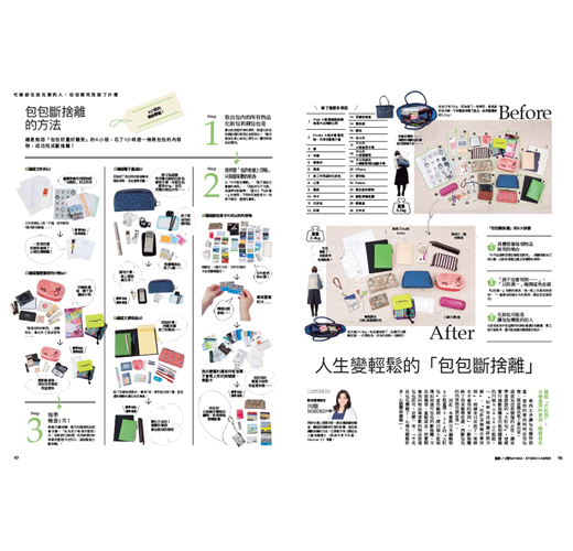 書裡的圖片很多,比起都是字的書,這樣的編排比較合我的意。除了居家空間,還有辦公桌和包包內容物的圖片,看著看著,自己也想動手試試看。結果,這陣子我的興趣變成打掃家裡和辦公室,打掃完變得乾淨清爽,心情也很愉快 (o^^o)