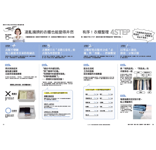 家中物品的收納與處理、衣服的穿搭與買法、辦公桌的整理方法、通勤包的內容物,以及心情的整理術。只使用喜歡的東西,過簡單的生活。書中豐富的創意做法,讓我讀起來驚喜連連。