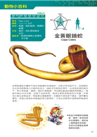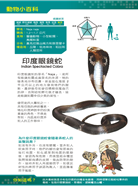 設有「動物小百科」單元,特別介紹眼鏡蛇和響尾蛇的構造與小常識,以及眼鏡王蛇、女神響尾蛇、金黃眼鏡蛇、北美侏儒響尾蛇等動物的超炫常識,讓小朋友有系統的學習。