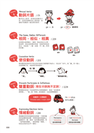 簡易的文法使用簡單的單圖輔助說明,而複雜一點點的文法就用「多圖比較」來解釋。尤其是一些令人眼花撩亂的進階英文文法,運用多張圖片做比較,就能一目了然!
