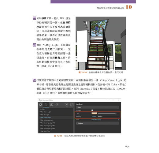 本書是作者經過深入研究所完成的 Vray 3.x for SketchUp 超詳盡解說手冊。書中以豐富的場景範例, 從最初的出圖大小設置、完成 VRay 所有項目設置, 到最後的渲染出照片級透視圖效果為止, 是一套完整的訓練內容。藉由本書讀者必能快速駕馭 VRay, 完成讓客戶讚不絕口的精彩設計!