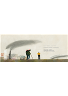 插畫家Laura Carlin灰濛濛的色系,偶來幾抹鮮豔的色彩,將小男孩心中的不安,壓抑,強烈的情感,安靜卻有力的帶了出來.