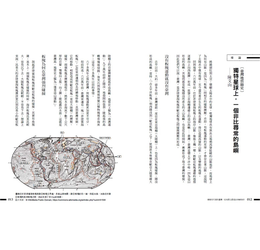 導論 〔臺灣地質簡史〕獨特星球上,一個非比尋常的島嶼 陳文山 將鏡頭拉到太空。環顧太陽系中的星球,唯獨地球具有狹長且地勢高聳陡峻的山脈地形,而地球上為何有山脈,是因為「板塊」間相互的碰撞擠壓,亦即,有板塊運動的星球,才會存在著山脈。這說明了太陽系中僅有地球,至今還有著活生生的板塊在運動,得以造就高聳的山脈,以及變動的地球。 回到地球。六百萬年前,位於菲律賓海板塊上的海岸山脈,像推土機一樣,將歐亞板塊邊緣的地殼逐漸向上向西推擠,形成一座聳立在海棚邊緣上的造山島嶼──臺灣。臺灣是環太平洋中唯一因為造...