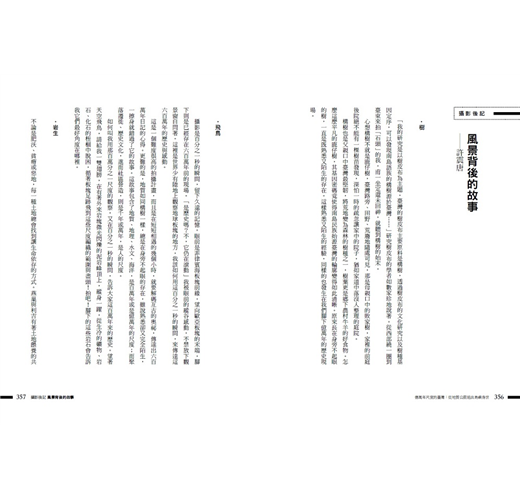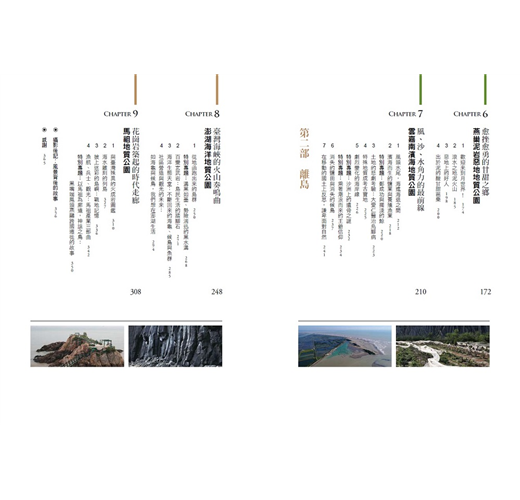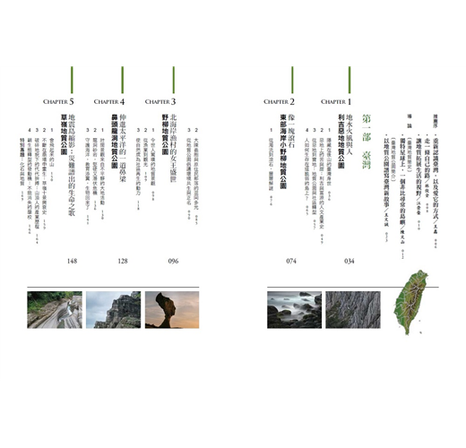 推薦序 重新認識臺灣,以及愛它的方式 王鑫 臺灣大學地理環境資源學系名譽教授、中國文化大學地學研究所特聘講座教授、臺灣師範大學環境教育研究所兼任教授 走一條自己的路 林俊全 臺灣大學地理環境資源學系教授、臺灣地質公園學會理事長 讓地質拓展生活的視野 江崇榮 經濟部中央地質調查所所長 導論 〔臺灣地質簡史〕獨特星球上,一個非比尋常的島嶼 陳文山 臺灣大學地質系教授 〔臺灣地質公園簡介〕以地質公園譜寫臺灣新故事 王文誠 臺灣師範大學地理系教授 第一部分 臺灣 第一章 地水火風與人──利吉惡地地質公園(撰文:林書帆 攝影:許震唐) 1隱藏在後山的臺灣身世 2惡地上的苦與甜:利吉與富源的人文產業史 3從惡地到寶地:地質公園與社區轉型 4人如何生存在這脆弱的島上? 第二章 像一塊滾石──東部海岸小野柳地質公園(撰文:林書帆 攝影:許震唐) 1 從濁流到滾石,層層解謎 2 大陳義胞與原住民部落的混同多元 3 從地質公園倡議環境共生與正名 第三章 北海岸漁村的女王盛世──野柳地質公園(撰文:諶淑婷.林書帆 攝影:黃世澤) 1令世人驚嘆的地質景觀 2從漁業到觀光 3使自然成為社區再生的動力 第四章 伸進太平洋的一道鼻梁──鼻頭龍洞地質公園(撰文:諶淑婷.林書帆 攝影:黃世澤) 1 壯闊景觀來自不平靜的大地活動 2 龍洞砂岩,堅硬又潛伏危機 3 守護海洋,教育添翼,生物回來了 第五章 地震島縮影:災難譜出的生命之歌──草嶺地質公園(撰文:陳泳翰 攝影:許震唐) 1會飛起來的山 2不斷在崩塌中重生:草嶺十景興衰史 3,破碎地貌下的代代拚搏:山頂人的產業歷程 4朝生態轉型的發動機:不能消失的學校 特別專題:化石與地質 第六章 愈挫愈勇的甘甜之鄉──燕巢泥岩惡地地質公園(撰文:邱彥瑜 攝影:許震唐) 1歡迎來到月世界! 2滾水之地泥火山 3惡地上的好人 4出於泥的酸甘甜芭樂 第七章 風、沙、水角力的最前線──雲嘉南濱海地質公園(撰文:陳泳翰 攝影:許震唐) 1風頭水尾,海進海退之間 2濱海而生的鹽業與養殖漁業 特別專題:鄭成功與擱淺的鯨 3土地的悲劇考驗:大愛仁醫治烏腳病 4特殊地質成考古寶地 5海進海退,劇烈變化的海岸線 特別專題:沙洲上的遺骨之謎 特別專題:乘著潮浪而來的王爺信仰 6消失的鹽田與消失的候鳥 7 在移動的國土上反思,謙卑面對自然 第二部分 離島 第八章 臺灣海峽的火山奏鳴曲──澎湖海洋地質公園(撰文:莊瑞琳.王梵 攝影:許震唐) 1 從地函跑出來的島群 特別專題:溝黑如墨、勢險湍迅的黑水溝 2百變玄武岩:島民生活的踏腳石 3海洋生態天堂:不斷回來的海龜、候鳥與魚群 4社區營造的未來:如海龜與候鳥,我們想在澎湖生活 第九章 花崗岩築起的時代走廊──馬祖地質公園(撰文:雷翔宇.莊瑞琳.王梵 攝影:許震唐) 1與臺灣殊異的火成岩圖鑑 2海水雕刻的列島 3披上迷彩的島嶼:戰地記憶 4漁航、兵士、觀光:馬祖產業三部曲 特別專題:以馬祖為廊道,神話之鳥:黑嘴端鳳頭燕鷗跨國遷徙的故事 ※攝影後記 風景背後的故事 ※誌謝