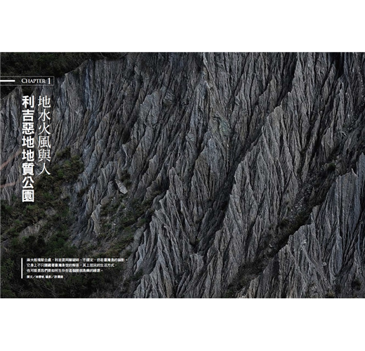 本書由《南風》作者許震唐、與曾獲金鼎獎攝影獎的資深記者黃世澤操刀九座地質公園攝影,透過攝影的思考呈現地質特色,使照片兼具人文、美感與知識性。本書以攝影集的品質呈現九座地質公園。透過這些攝影,你將發現原來你曾去過的地方有更深刻的美學,而你不曾去過的地方,則是你下一個亟欲前往一探究竟之地。