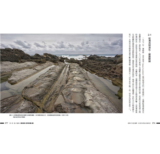 首篇以板塊碰撞交界處的東部拉開序幕,講出臺灣在世界史的位置,以及「臺東利吉惡地」地質的重要。接著用層層推理解謎的方式,解答「小野柳富岡砂岩」為何倒轉、如何倒轉。