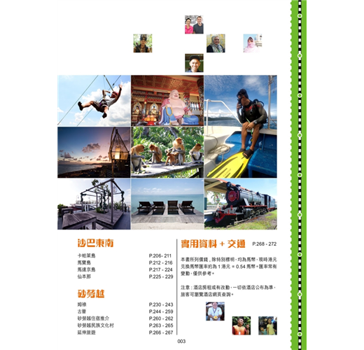 全書厚達272頁,內容全面更新,搜羅更多食玩買住超過400個景點,玩盡沙巴市中心、汶萊、砂勞越及鄰近島嶼合共17大分區,全感受上山下海、穿越叢林、濕地、激流與洞穴,與自然生態野。