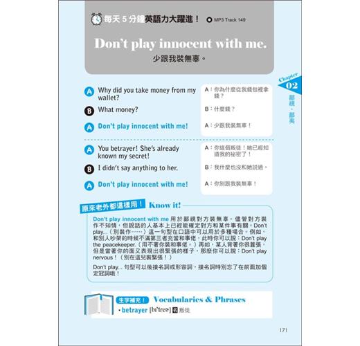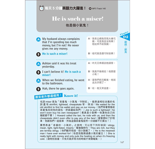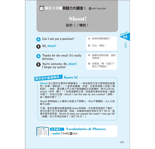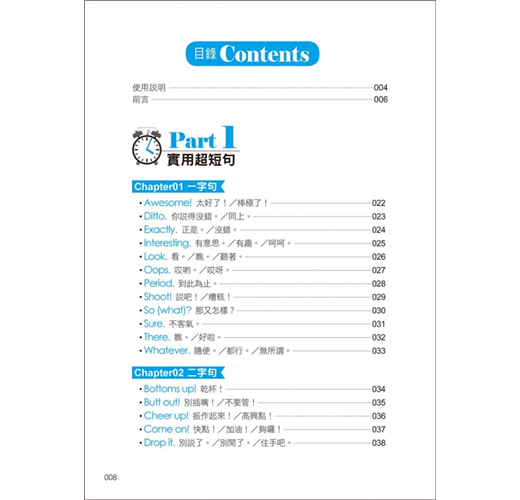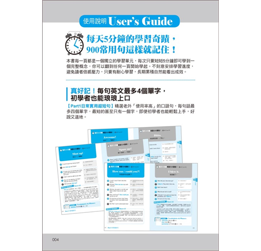 每個單元都有1個英文主句,並搭配2組對話幫助讀者進一步學習句子用法;
