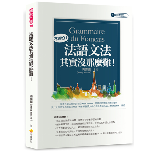 法語是個美麗的語言,很多人卻因為害怕看似複雜的文法而放棄學習法語。本書透過清楚的表格、簡單的例句,將看似艱深的文法拆解、分析,讀了之後你會發現,其實法語文法真的沒有那麼難!