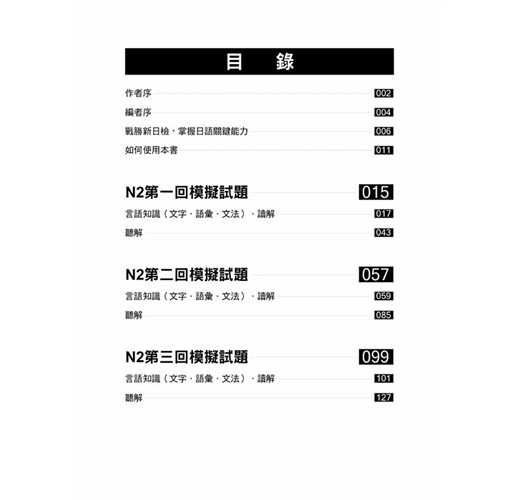 新日檢N2考試題型多變,文章較長,更有許多比較分析的題目,準備不夠充分的話,在考試時往往無法順利寫完所有試題。本書讓您熟悉各種考試題型,提升答題技巧,發揮應有的實力。