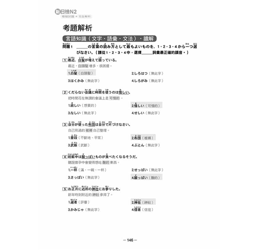 新日檢計分方式與舊制不同,各科都必須均衡發展,才能合格。本書每回測驗都有解答與詳細試題分析解說,幫助考生找出盲點,完全精通N2程度的日語。