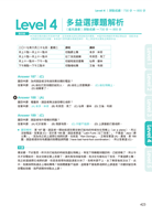 學習一定要循序漸進!本書依照多益證書成績分成5個程度(即橘色證書到金色證書)。我們規劃了Level 1到Level 5完整且系統化的學習方式,透過本書,你可以由淺入深破解多益考試,面對多益考試不需再害怕!
