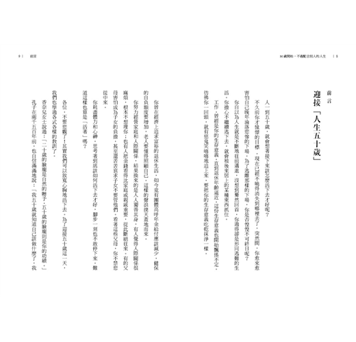如今,融合人生四十多年來的經驗與知識,終於你慢慢地培養出自己的一套哲學,同時你要迎接「人生五十歲」。