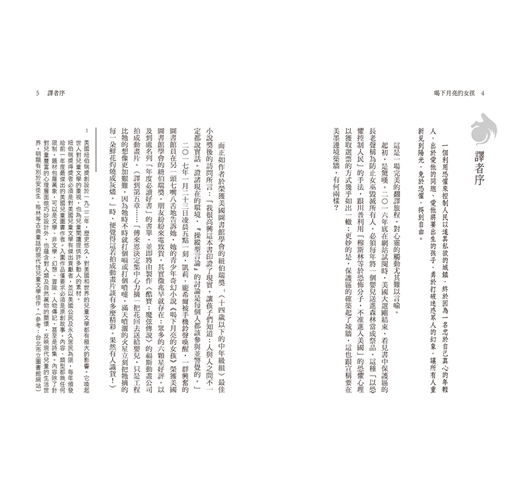 二〇一七年一月二十三日凌晨五點一刻,凱莉‧龐希爾被手機鈴聲喚醒,一群興奮的圖書館員在另一頭七嘴八舌地告訴她,她的青少年奇幻小說《喝下月亮的女孩》榮獲美國圖書館學會的紐伯瑞獎。朋友紛紛來電致賀,其實徵兆早就存在:眾多的六顆星好評,以及到處名列「年度必讀好書」的書單,並即將由製作《酷寶:魔弦傳說》的福斯動畫公司拍成動畫片。(譯到第五章……「傅來恩決定集中心力摘一把花回去送給嬰兒,只是工程比牠的想像更加艱難,因為牠時不時就打個嗝或打個噴嚏,滿天噴灑的火星立刻把牠摘的每一朵鮮花灼燒成灰燼。」時,便覺得這若拍成動畫片該有多麼精彩。果然有人識貨!)