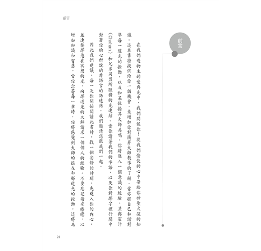 他也強調:「揚昇不會自動地發生,它需要我們用時間、自愛、努力與承諾,持續不斷地練習。」希望有緣接觸到本書的讀者,從當下開始,就做下揚昇的承諾。以謙卑臣服的心,跟隨書中的教導,為自己、所愛的人、地球與宇宙創造和平、喜悅、光明與幸福的未來!感謝所有推動本書出版的靈性勇士們!