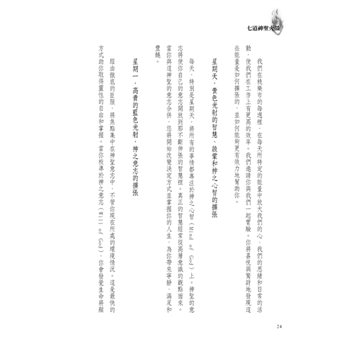 這七道火燄均是宇宙中難能可貴的氣能,它們各自具有不同的神之屬性與品質,組成了合一的能量磁場。運用這些神奇的火焰來清理個人的業力以及情緒體,可以幫助我們完成自我實現,並精煉內在的神性,最後得以走上揚昇的道途。(本書適合具靈修基礎之讀者閱讀。)