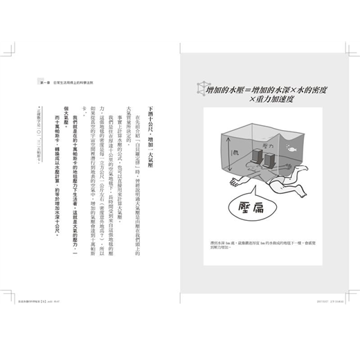 本書的特色即是將科學原理與生活中可以觀察到的現象、情境做連結,除了有科學史的演進介紹外,並佐以原理、公式的計算說明生活中周遭的現象,無形中也讓讀者在閱讀中培養對問題的思考力,以及對自然現象的觀察力,提高對於科學的好奇心,以及追求知識的熱忱。
