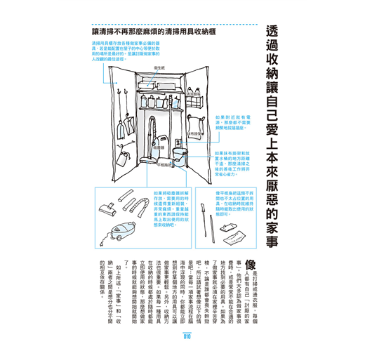 本書作者田中娜奧美女士,以她身為建築師及家庭主婦的兩種立場來重新解析居家環境的建構,引領讀者重新認識住宅的格局與區域機能,找出各種區域難以整理的根本原因,進而藉由設計規劃與打掃模式的修正,再融入各種生活小巧思的運用,讓居家空間能夠重新發揮它們應有的機能,提高住戶的生活水平。