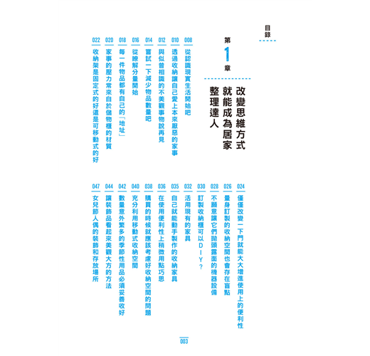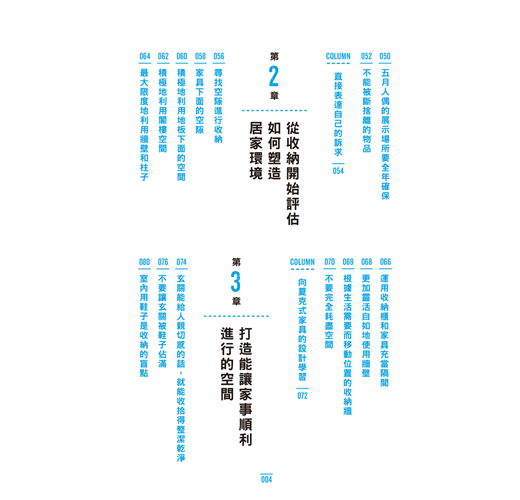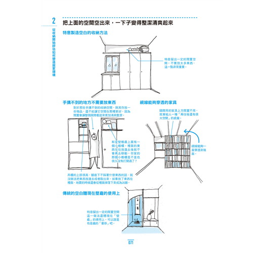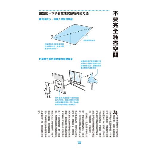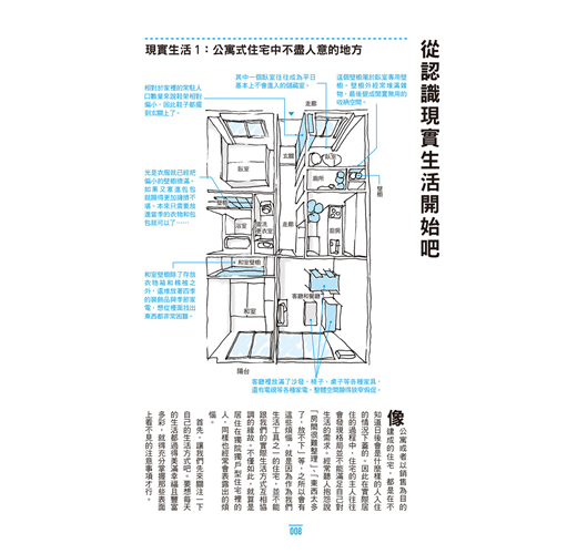 從環境的再認識、使用者心態、空間設計、百變收納法等多元角度切入問題的關鍵核心,讓你輕鬆診斷居家環境的使用效率及盲點所在,重新找回住宅與住戶之間的舒適協調感。