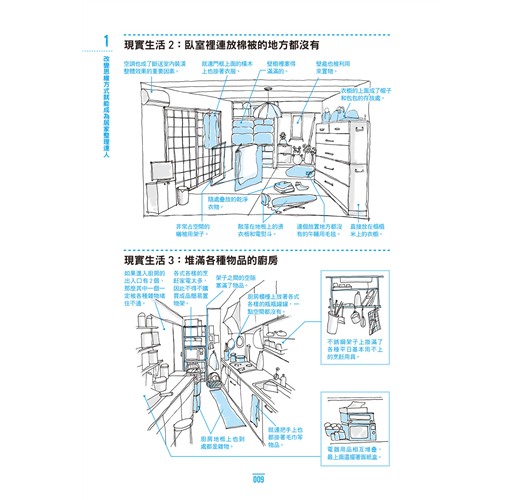既然這個問題如此嚴重,為何很多人卻依然放任自己的家中環境繼續雜亂下去呢?對於這個問題,不論受訪者的職業背景、生活作息、興趣喜好、家庭構成、住家型態為何,我們時常可以得到「東西太多了」、「房間很難整理」、「打掃很麻煩」等共通的答案。事實上,這些困擾都跟我們的生活方式息息相關。只要重新建構我們對生活與環境整理所抱持的思維,針對根本原因對症下藥,原本讓人討厭的家事,做起來也會變得更加得心應手。