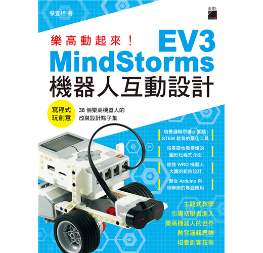 本書採主題式教學, 循序漸進、由淺入深, 藉由實例跟實驗引導初學者進入樂高機器人的世界, 培養讀者自主性、探索式的學習素養。書中的範例可由此發展成對外參加 WRO 國際奧林匹亞機器人比賽、參加科學展覽、專題製作或發展學校特色課程等, 是啟發邏輯思維與創客技術的最佳教材。