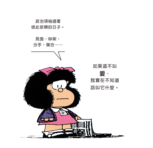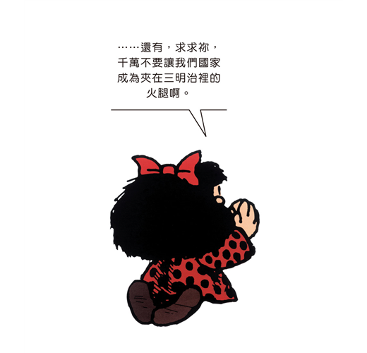 ★瑪法達以孩子角度觀察世界情勢,國際政治經濟上的壓迫與大小國間的角力,至今仍是全世界息息相關的問題!